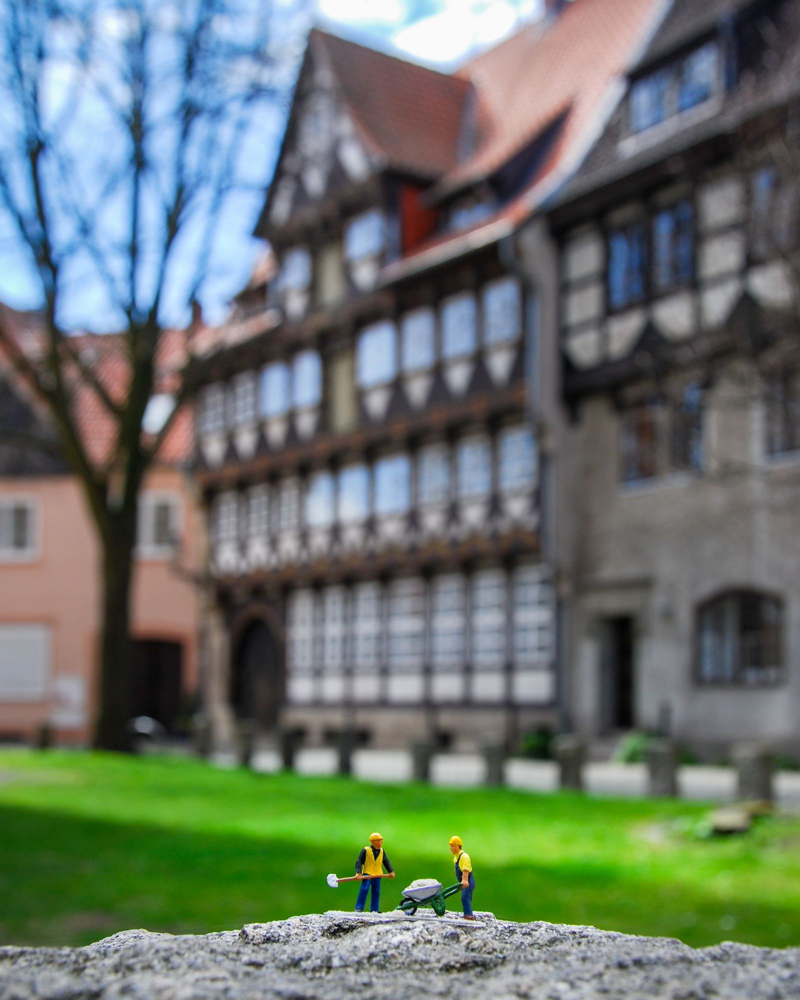 die.minis.on.tour… winzige Leser in einer großen Welt. Eine Miniaturpause vor dem öffentlichen Bücherregal am kleinen Plan in Celle.